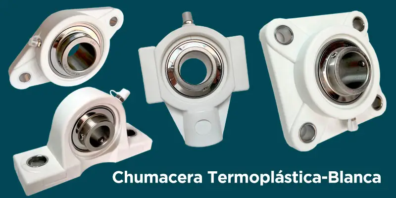 Las chumaceras termoplásticas blancas son ligeras, resistentes a la corrosión y ofrecen un excelente rendimiento en condiciones de humedad y temperaturas moderadas. Son ideales para la industria alimentaria, farmacéutica y en entornos donde la higiene es crucial.